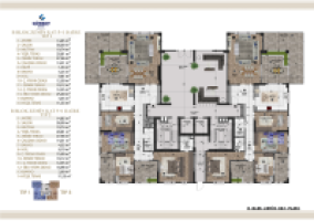 4+1 dairelerimiz 284 m2, 5+1 dairelerimiz 312 m2, 5+2 dairelerimiz 387 m2.